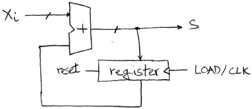 State Elements Handout: Considers how to add up numbers that are supplied on each clock cycle.