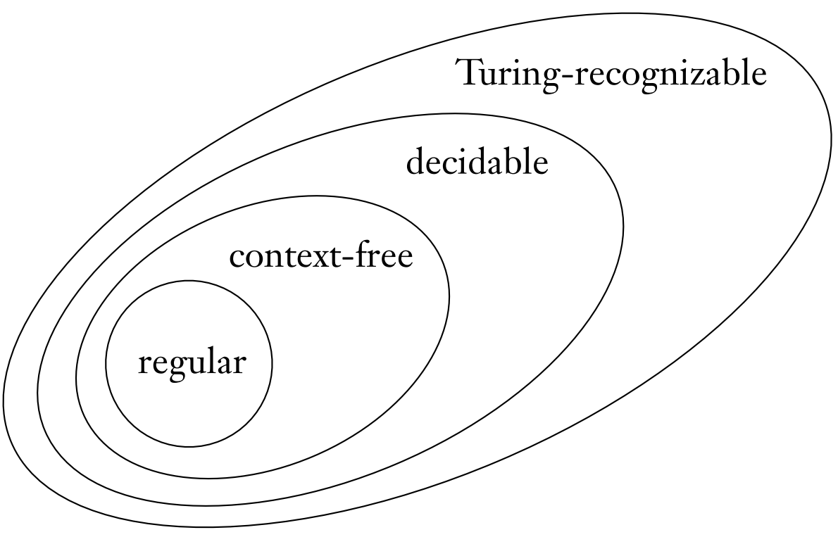 The "context-free" oval is completely inside the "Turing-recognizable" one.
